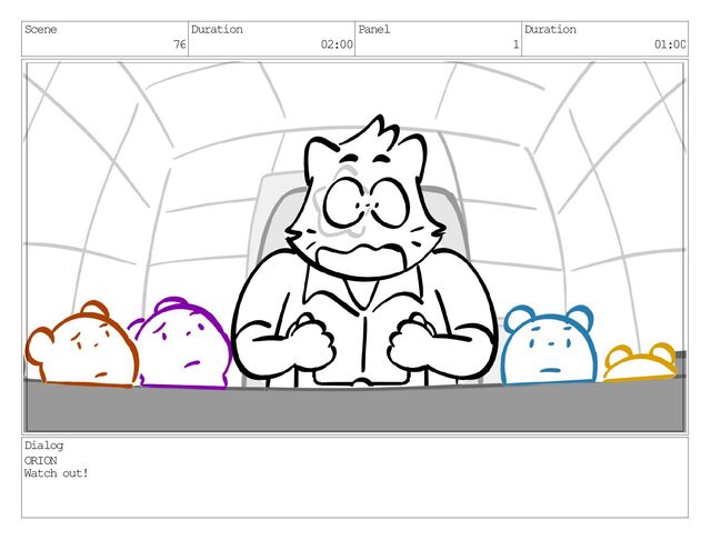 Scene 76 Duration 02:00 Panel 1 Duration 01:00 Dialog ORION