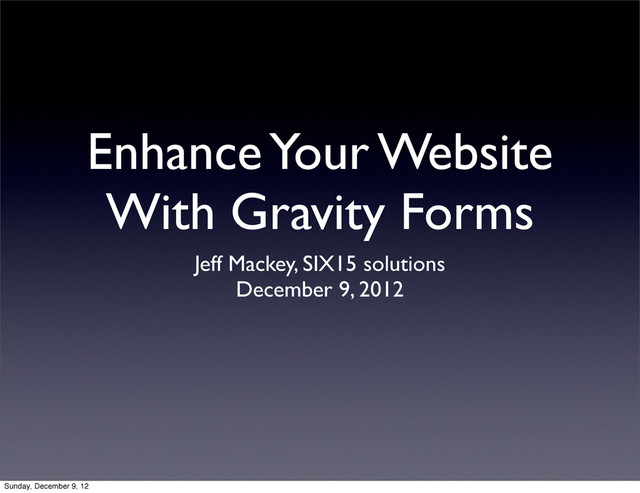 MySQL 5 and PHP 5 in order to function properly. Please note that Gravity Forms is not compatible with the WordPress.com hosted service.” gravityforms.com Sunday, December 9, 12
