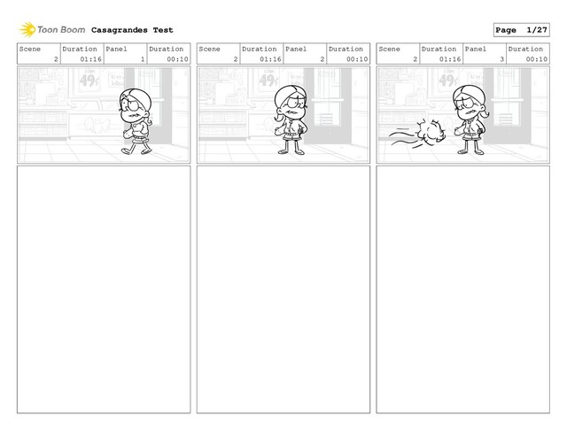 "Hiiii" Scene 4 Duration 01:23 Panel 1 Duration 00:12 Dialog CJ "They all went out to look for you!" Scene 4 Duration 01:23 Panel 2 Duration 00:11 Casagrandes Test Page 5/27