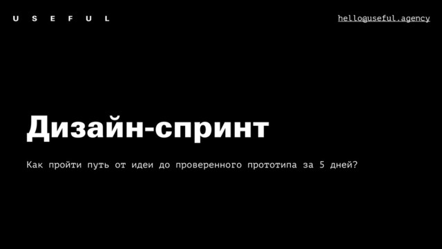 времени = Ответы на важные вопросы: • Как должен выглядеть и работать продукт • Стоит ли идея месяцев работы • Найдет ли ваше ценностное предложение отклик у аудитории • Как «продать» идею команде и руководству 5 дней