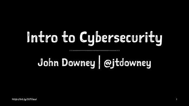Intro to Cybersecurity John Downey | @jtdowney http://bit.ly/2tTOeu1 1