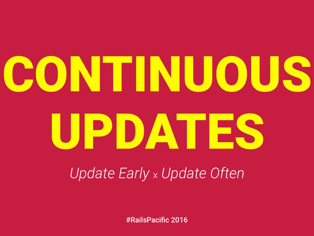 CONTINUOUS UPDATES Update Early x Update Often #RailsPacific 2016