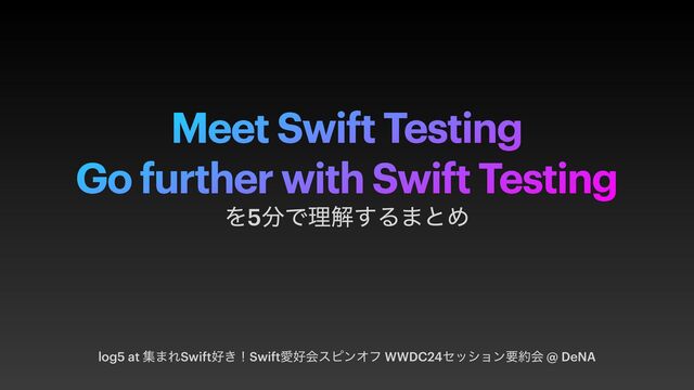 Meet Swift Testing Go further with Swift Testing log5 at