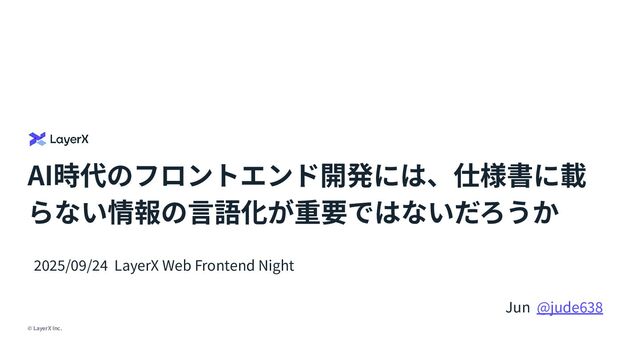 © LayerX Inc. AI時代のフロントエンド開発には、仕様書に載 らない情報の⾔語化が重要ではないだろうか Jun @jude638 2025/09/24 LayerX Web