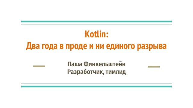 Об истории знакомства с Kotlin, экспериментах с ним и применении его в production. Основные аспекты работы в enterprise с Kotlin, с какими трудностями пришлось встретиться и как их удалось решить. Про interop и про то, правда ли он настолько хорош, как кажется.