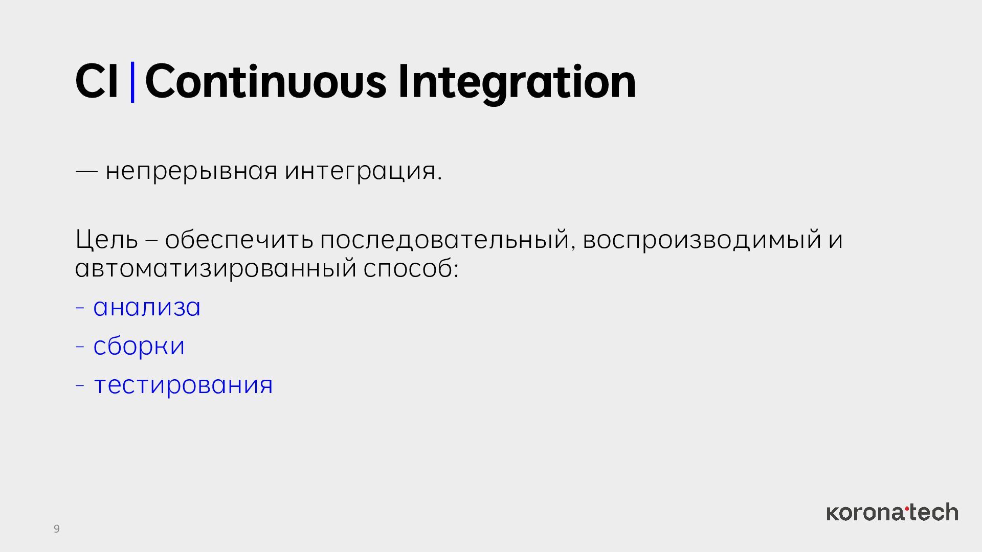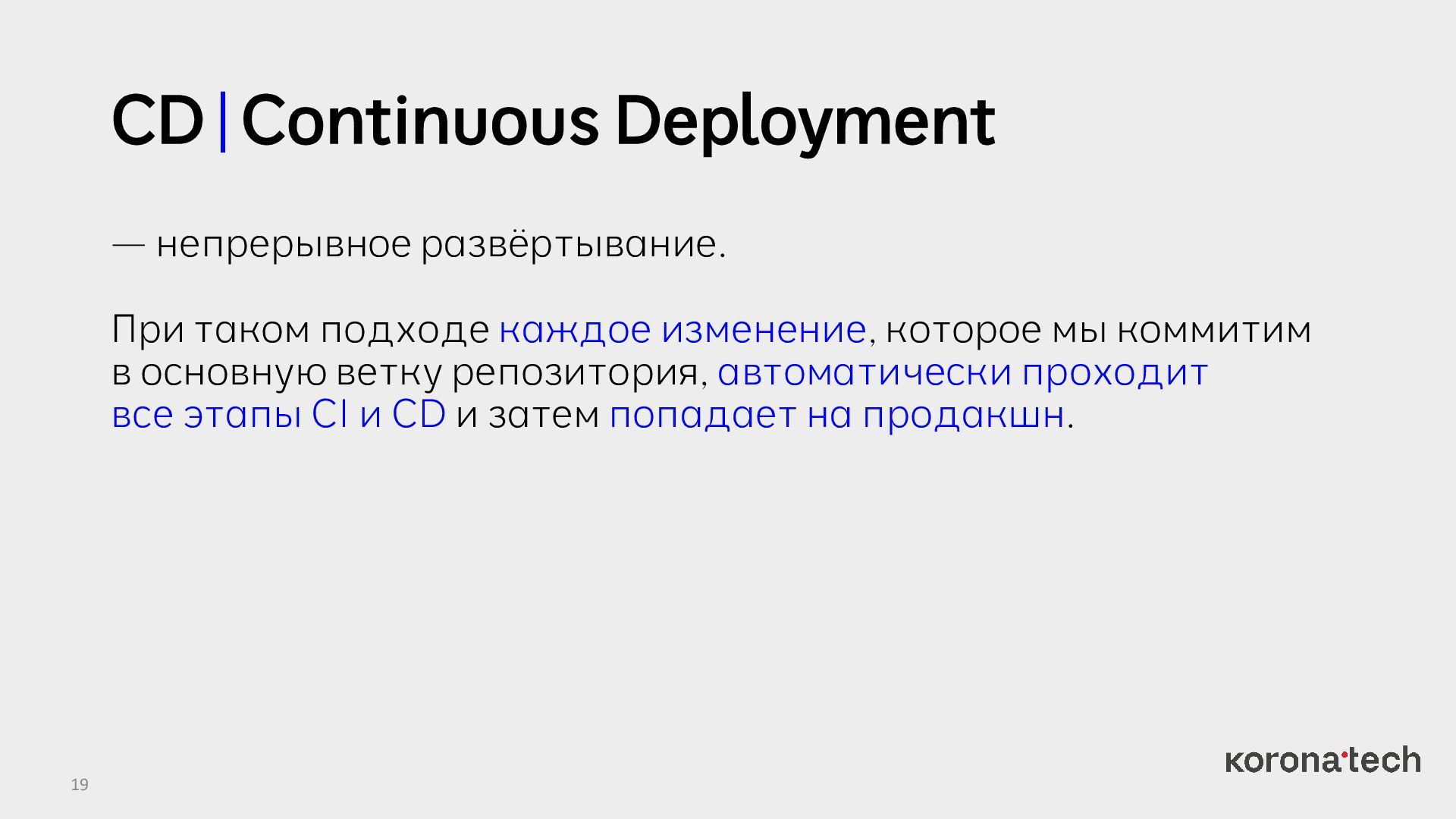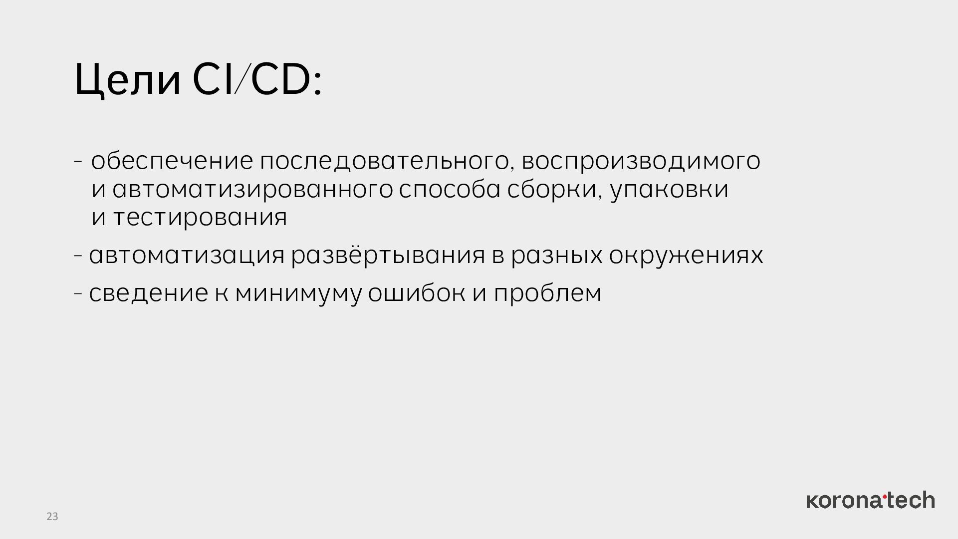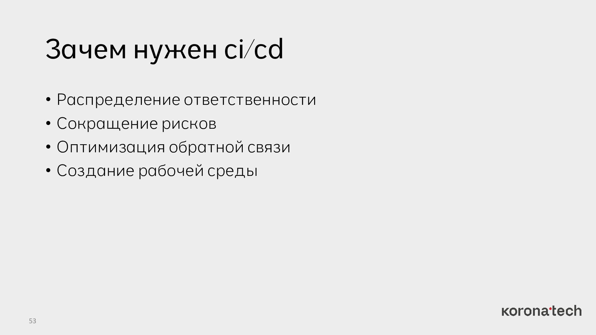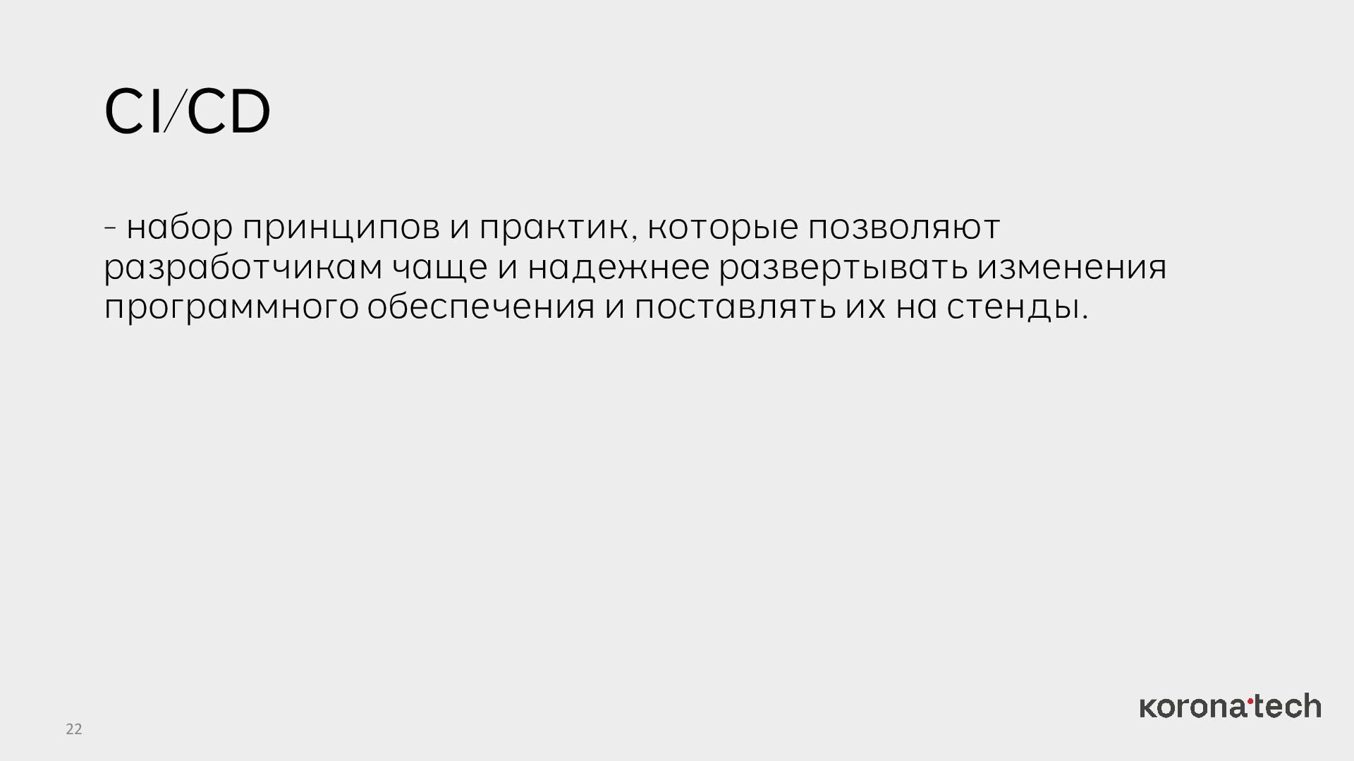 Скорость поставки и качество продукта — главные конкурентные преимущества в разработке ПО. Поэтому важно использовать лучшие практики сообщества для обеспечения этих двух пунктов. Одной из таких практик является CI/CD — Continuous Integration и Continuous Delivery — непрерывная интеграция и непрерывная доставка. Она помогает свести ошибки к минимуму, повысить качество разрабатываемого продукта и увеличить скорость его поставки клиенту. Без непрерывной интеграции сотрудничество разработчиков превращается в утомительный ручной процесс координации обновлений и слияний кода.