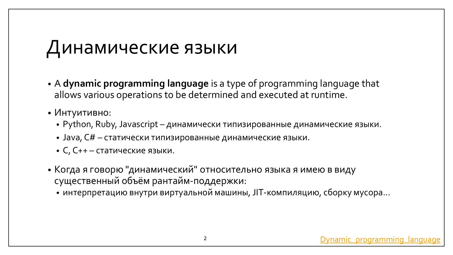 Рассмотрим, чем статически компилируемые языки отличаются от динамически компилируемых, что такое трансляционная семантика, чем трансляция отличается от исполнения и какие странные ограничения статических компиляторов это порождает.