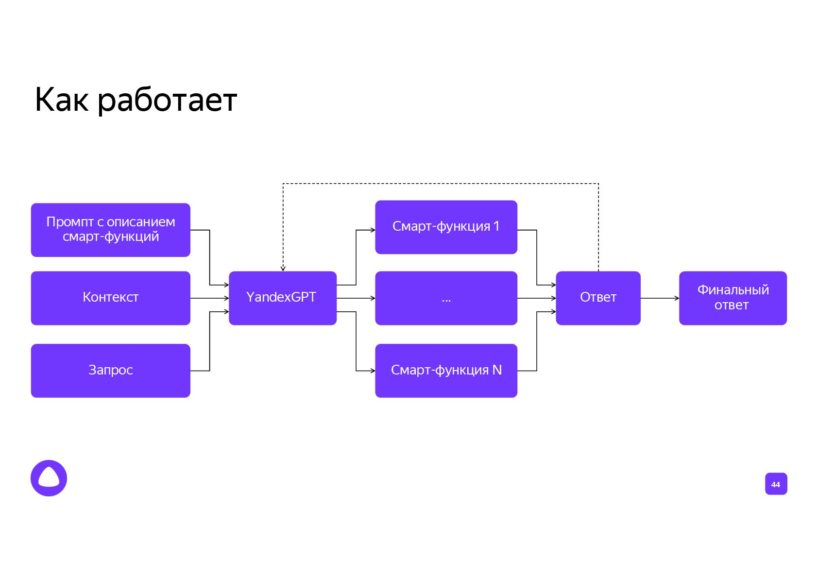 Рассмотрим принцип работы умного ассистента и постепенно погрузимся в детали разработки. Разберемся, что такое сценарий в терминах Алисы и посмотрим, как все меняется с применением LLM для реализации смарт-функций.