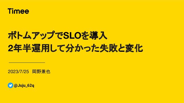 タイミーでは2020年12月にSLOを取り入れました。SLOを実際に導入してみると、当初の想定と異なる部分が出てきます。また、組織やシステムの変化によって対応を迫られる場面も生まれます。時には定義やアプローチの失敗から運用がうまくいかない場面もあります。 これらの事柄に機能開発を担当しているエンジニアとしてどのように対応し、乗り越えてきたのかをお話しします。その過程で分かった失敗や教訓を言葉として伝えながら、結果としてどのようにSLOを運用しているのかを紹介します。
