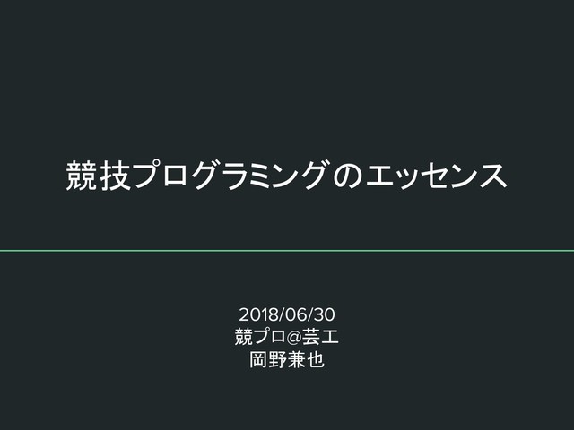 競技プログラミングのエッセンス 2018/06/30 競プロ@芸工 岡野兼也