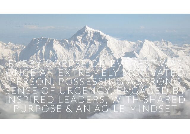 Ltd All Rights Reserved. Protected in part by copyright, patent and trademark and other law EVERY CORPSE ON EVEREST WAS ONCE AN EXTREMELY MOTIVATED PERSON, POSSESSING A STRONG SENSE OF URGENCY, ENGAGED BY INSPIRED LEADERS, WITH SHARED PURPOSE & AN AGILE MINDSET 1