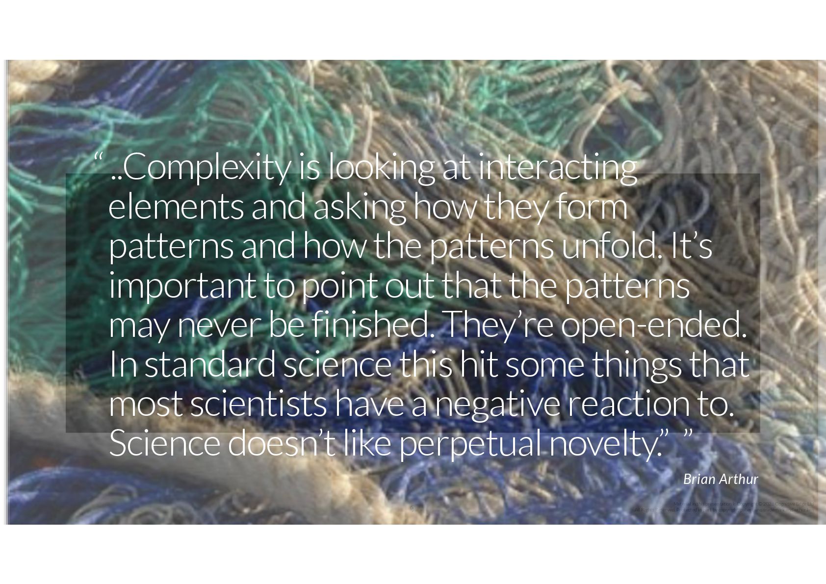 Ltd All Rights Reserved. Protected in part by copyright, patent and trademark and other law “ ..Complexity is looking at interacting elements and asking how they form patterns and how the patterns unfold. It’s important to point out that the patterns may never be finished. They’re open-ended. In standard science this hit some things that most scientists have a negative reaction to. Science doesn’t like perpetual novelty.” ” Brian Arthur 9