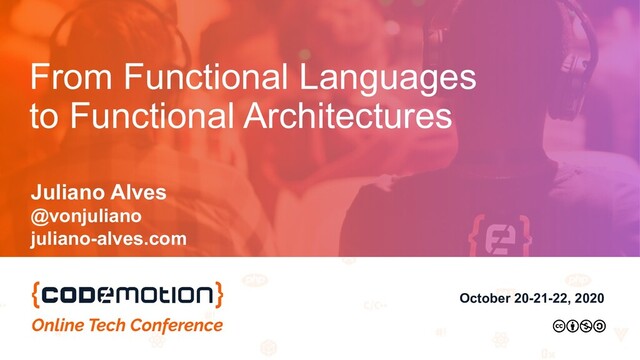 Software tends to be organised in a similar way in different levels: methods in classes, classes in packages, packages in projects and so on. The OO approach defined a good amount of this standards. However, there are companies building massive systems out there, handling numerous requests in a functional way. Could the functional approach have any impact on architecture? Lambda functions, immutable databases and short-life infrastructure are a few examples. In this session you will see how the functional paradigm has impacted software architecture at a much deeper level than one can imagine
