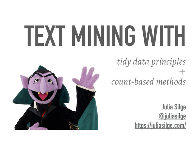 -", "He kindly stopped for me -", "The Carriage held but just Ourselves -", "and Immortality") > > text ## [1] "Because I could not stop for Death -" "He kindly stopped for me -" ## [3] "The Carriage held but just Ourselves -" "and Immortality" What do we mean by tidy text?