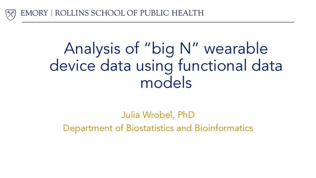 in Wearables Research Friday, November 3 Advances and Challenges in Wearables Research Julia Wrobel, PhD Keynote Speaker Friday, November 3 10:00 AM — 3:00 PM REGISTER: bit.ly/BERD2023 In-Person: Morehouse School of Medicine, Building A, 4th Floor Sr. Biostatistician Virtual: Zoom