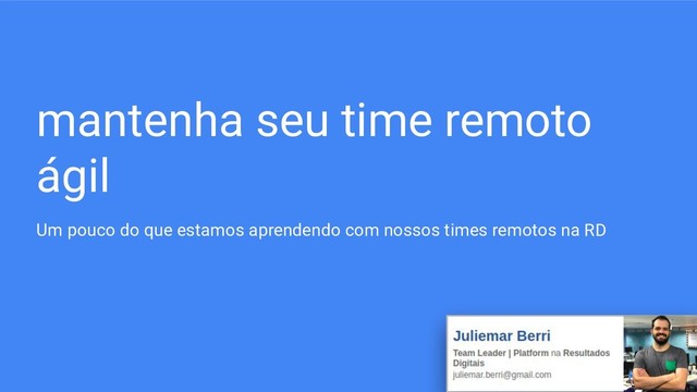 mantenha seu time remoto ágil Um pouco do que estamos