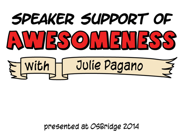 Once upon a time, I was terrified of public speaking. I went from having stage fright to being a stage presence who speaks at conferences. I run a support group for old and new speakers called the "Tech Conf Speaker Support of Awesomeness." I want to talk about what we do, why we do it, and how well it's worked out so far. This talk is about speaking for the first time, improving your talks, and how conference organizers and attendees can help too.