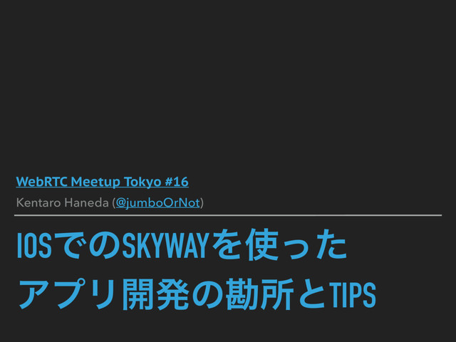 IOSͰͷSKYWAYΛͬͨ ΞϓϦ։ൃͷצॴͱTIPS WebRTC Meetup Tokyo #16 Kentaro Haneda (@jumboOrNot)