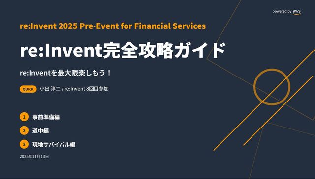 re:Invent 2025 Pre-Event for Financial Services re:Invent完全攻略ガイド QUICK 小出 淳二