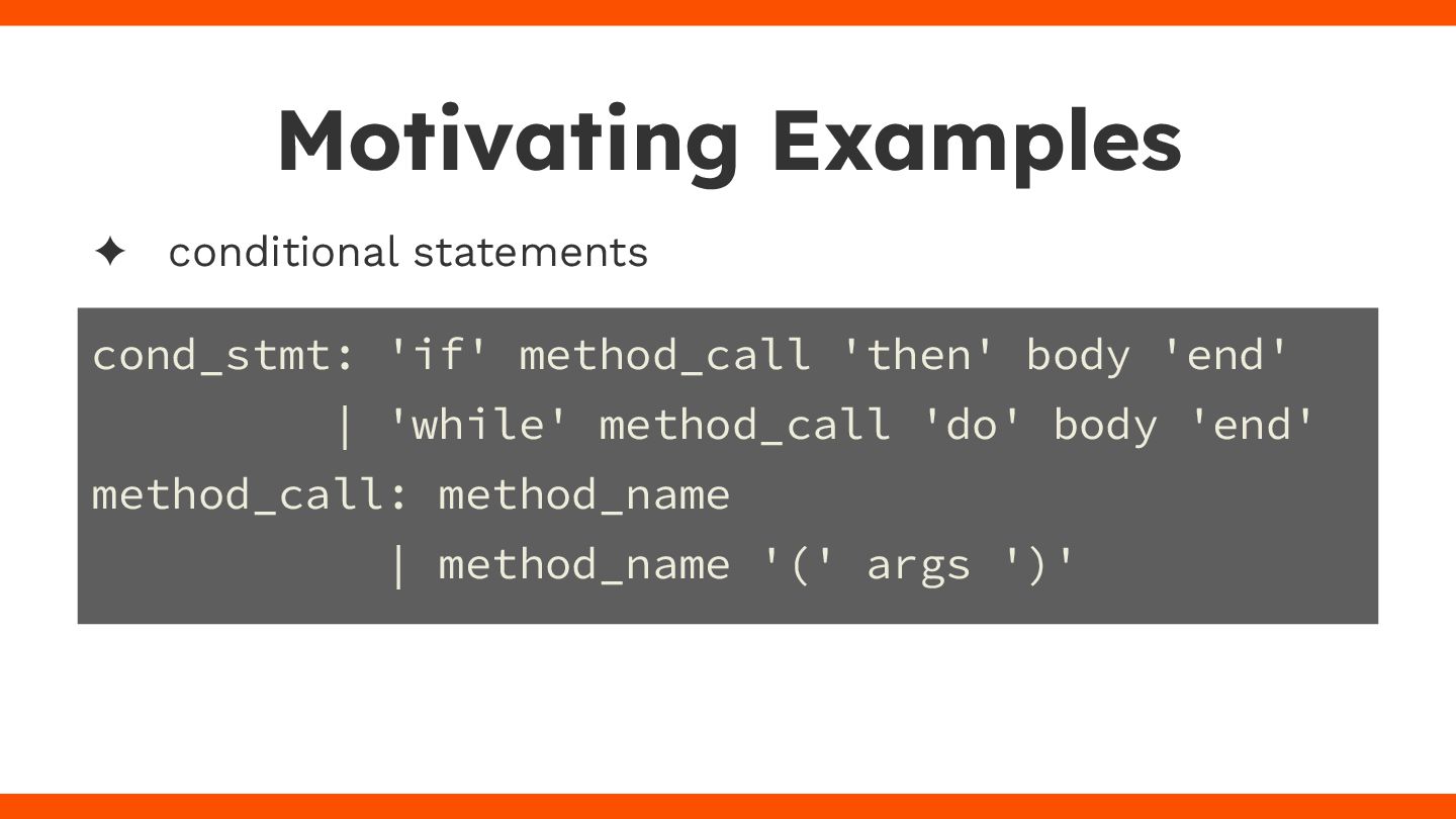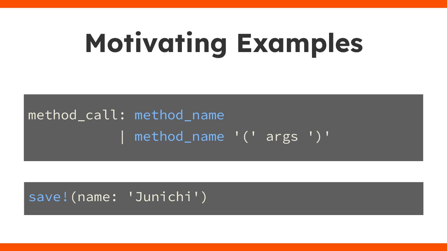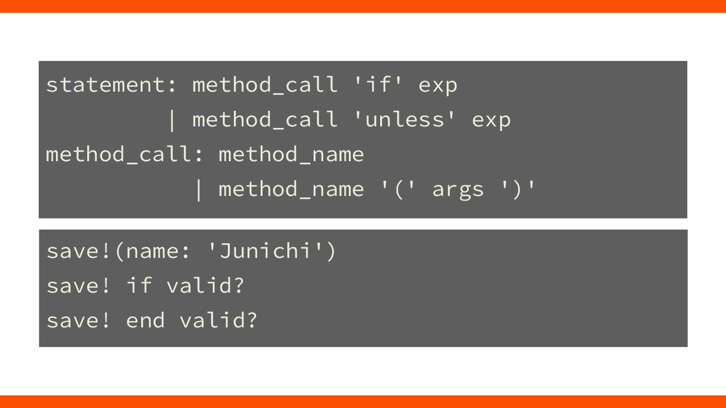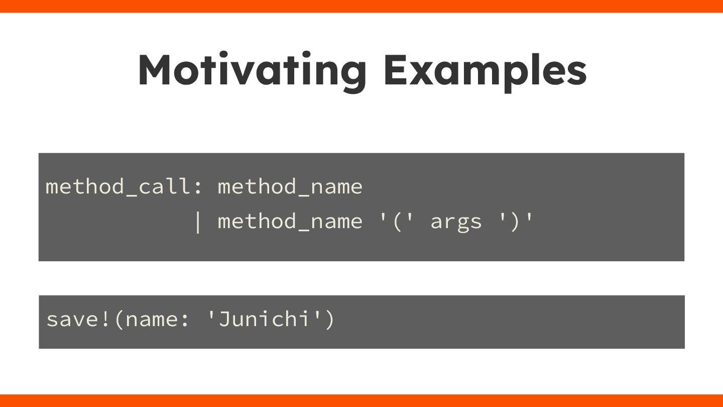 keyword_do_cond ✦ keyword_do_block ✦ keyword_do_LAMBDA ✦ The tokens read so far provide sufficient information to decide Identify 4 'do's Smart obj.m(arg) do ... end while(true) do ... end obj.m arg do ... end -> (arg) do ... end