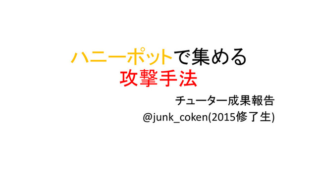 ハニーポットで集める 攻撃手法 チューター成果報告 @junk_coken(2015修了生)
