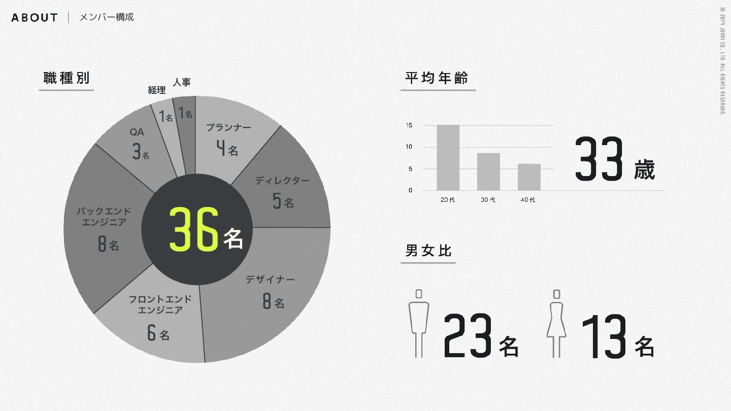 目次 会社概要・沿革・事業領域・理念・価値基準 経営陣・メンバー構成 働く環境について・福利厚生 制作フロー・アワード受賞歴・実績紹介