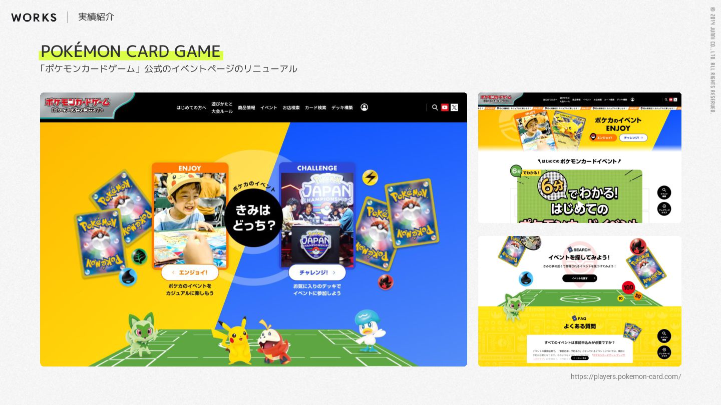 POKÉMON CARD GAME 「ポケモンカードゲーム」公式のイベントページのリニューアル 実績紹介 https://players.pokemon-card.com/