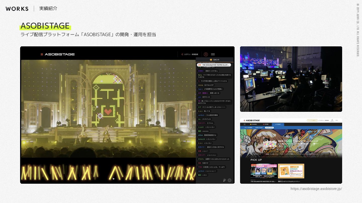 ASOBISTAGE ライブ配信プラットフォーム「ASOBISTAGE」の開発・運用を担当 https://asobistage.asobistore.jp/ 実績紹介