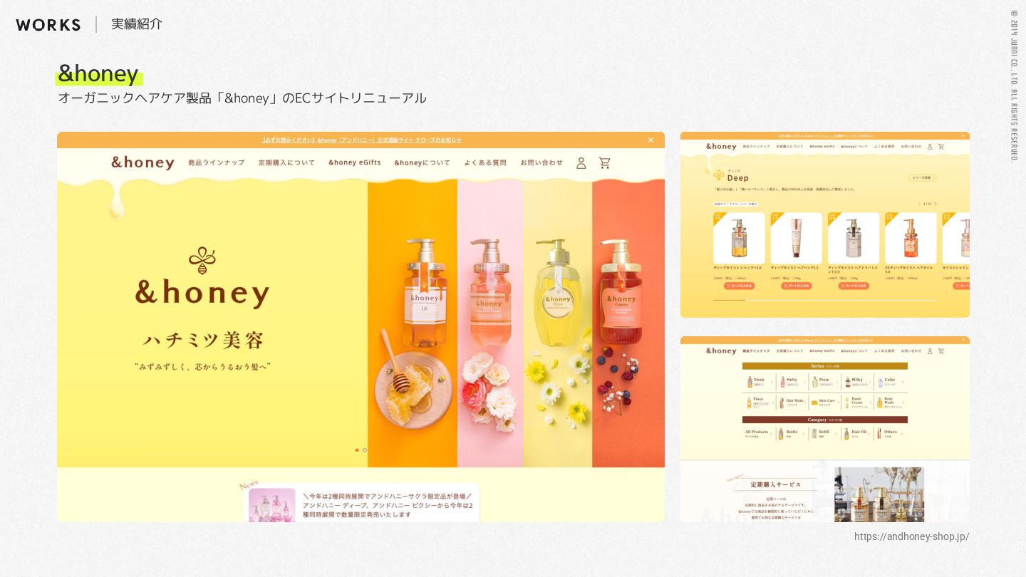 &honey オーガニックヘアケア製品「&honey」のECサイトリニューアル https://andhoney-shop.jp/ 実績紹介