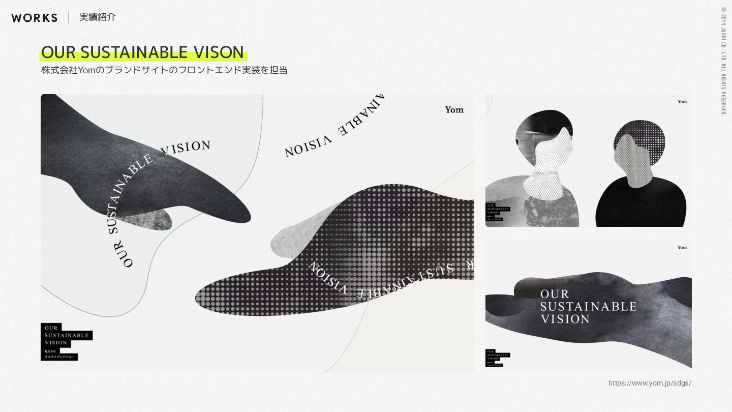 OUR SUSTAINABLE VISON 株式会社Yomのブランドサイトのフロントエンド実装を担当 https://www.yom.jp/sdgs/ 実績紹介