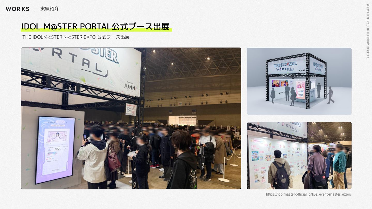 実績紹介 IDOL M@STER PORTAL公式ブース出展 THE IDOLM@STER M@STER EXPO 公式ブース出展 https://idolmaster-official.jp/live_event/master_expo/