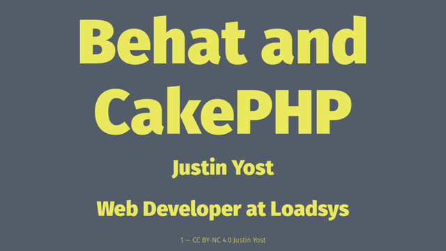 Behat and CakePHP Justin Yost Web Developer at Loadsys 1