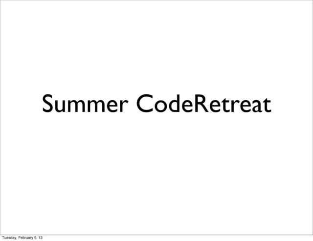 Summer CodeRetreat Tuesday, February 5, 13