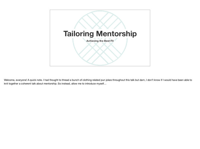 note. I had thought to thread a bunch of clothing related pun jokes throughout this talk but darn, I don’t know if I would have been able to knit together a coherent talk about mentorship. So instead, allow me to introduce myself…