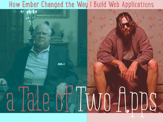Title Google http://lebowskifest.com Web Page Title <script src=js/main.js /> <link href=css/app.css /> <img src=images/donny.jpg /> 1.Router creates a Route based on location 2.Route loads a Model 3.Route creates a Controller & sets the Model 4.Route renders a View 5.Controller sets state on View 6.View renders a Template http://lebowskifest.com/api/scenes MVC MVC
