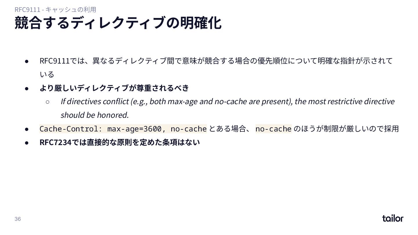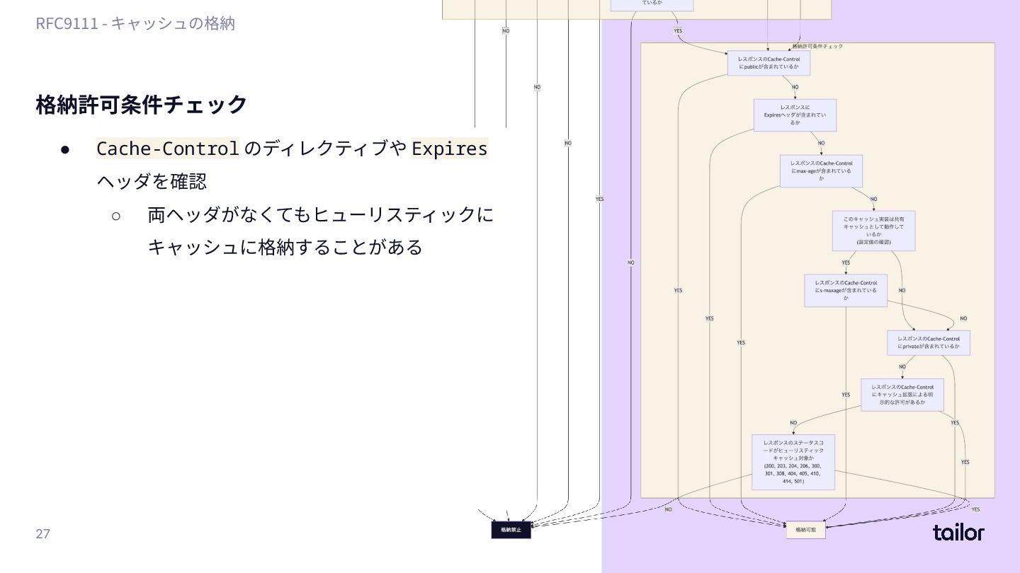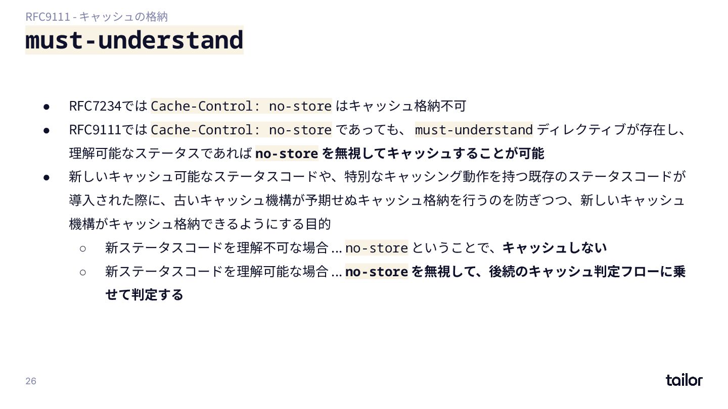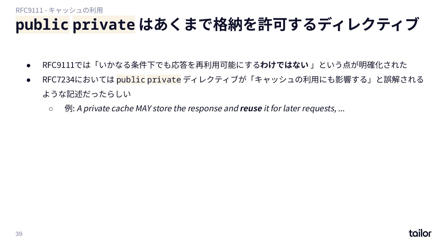 HTTP caches, including browsers, proxy caches and CDNs. • https://cache-tests.fyi/ ◦ https://github.com/http-tests/cache-tests • RFC9111を参照しているテストスイート ◦ HTTPキャッシュはその性質上、最適化⼿段である。実装は全てをキャッシュする必要はない。ただ し、キャッシュを⾏う場合、その動作は仕様書(RFC9111)によって制約される。(発表者訳) • ローカルでもテストが可能(!!!) Tests for HTTP Caches RFC91111 41