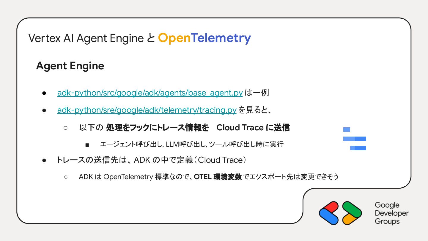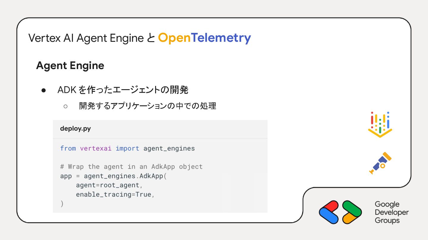 Vertex AI Agent Engine と OpenTelemetry Agent Engine • ADK