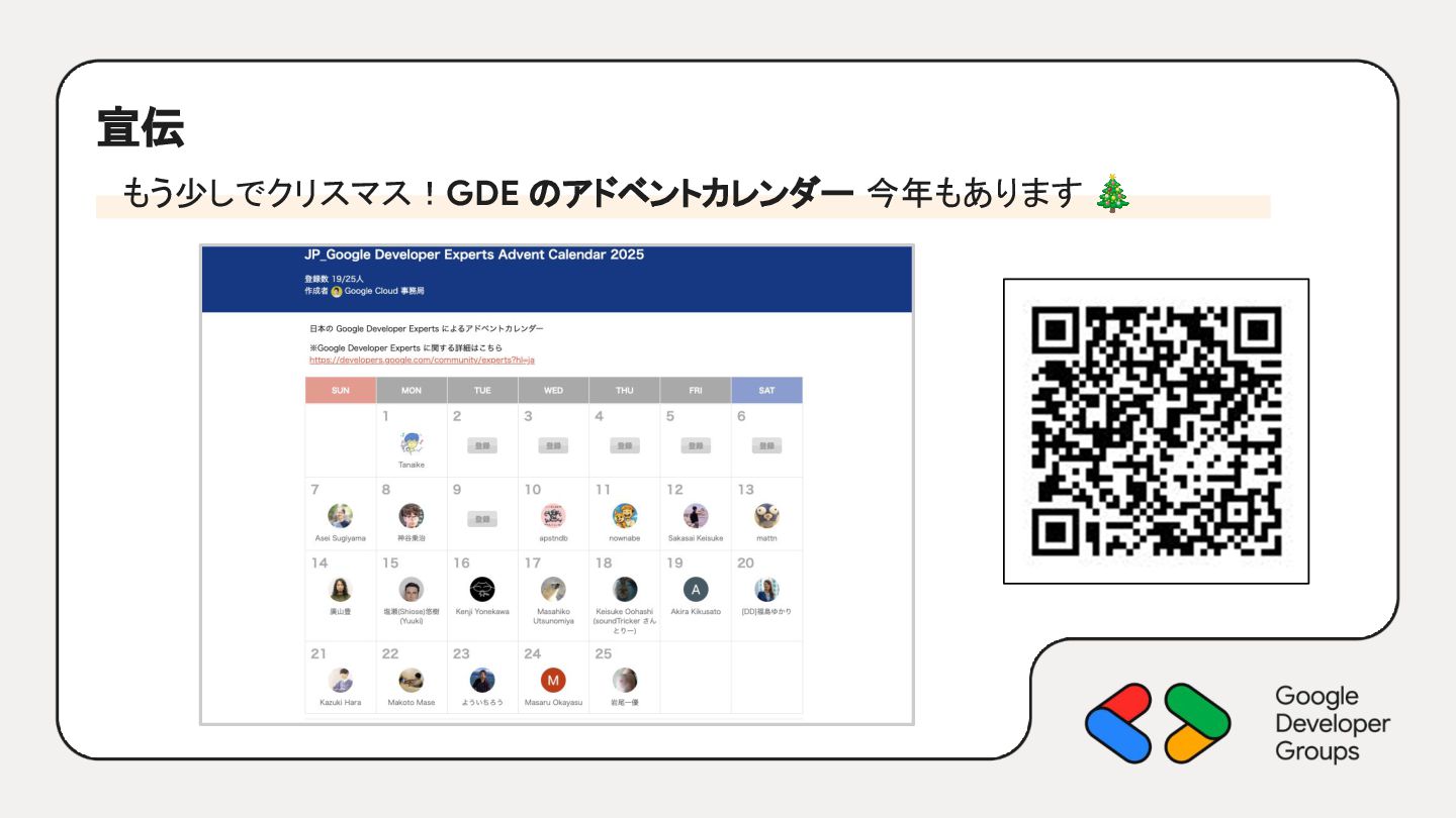 宣伝 もう少しでクリスマス!GDE のアドベントカレンダー 今年もあります 🎄