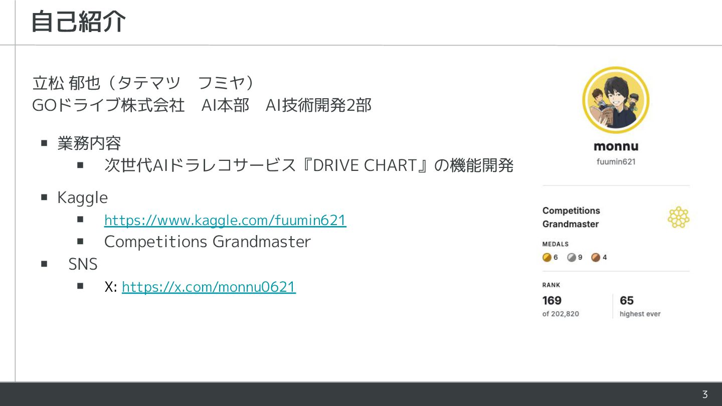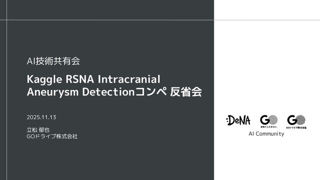 社内の技術共有会での発表資料です。Kaggle RSNA Intracranial Aneurysm Detectionコンペの振り返りにです。脳動脈瘤の検出タスクにおける、コンペ概要や上位陣の解法などご紹介します。