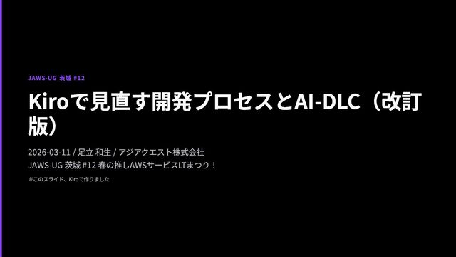 1. JAWS-UG 茨城 #12 Kiroで見直す開発プロセスとAI-DLC(改訂 版) 2026-03-11 / 足立 和生 /