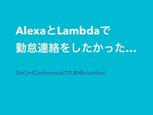 AlexaͱLambdaͰ ۈଵ࿈བྷΛ͔ͨͬͨ͠… Go(Un)ConferenceLTେձ@k-kurikuri