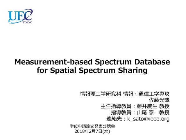 [Ph.D. Final Defense] Measurement-based Spectrum Database for Spatial Spectrum Sharing (written in Japanese)