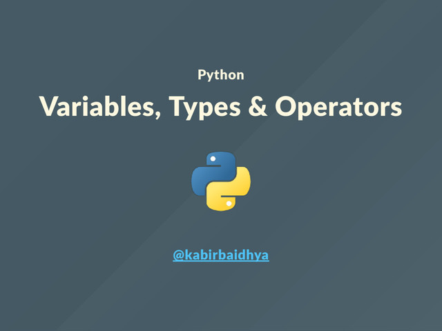 This slide introduces the basics of programming in Python with variables, data types & operators.