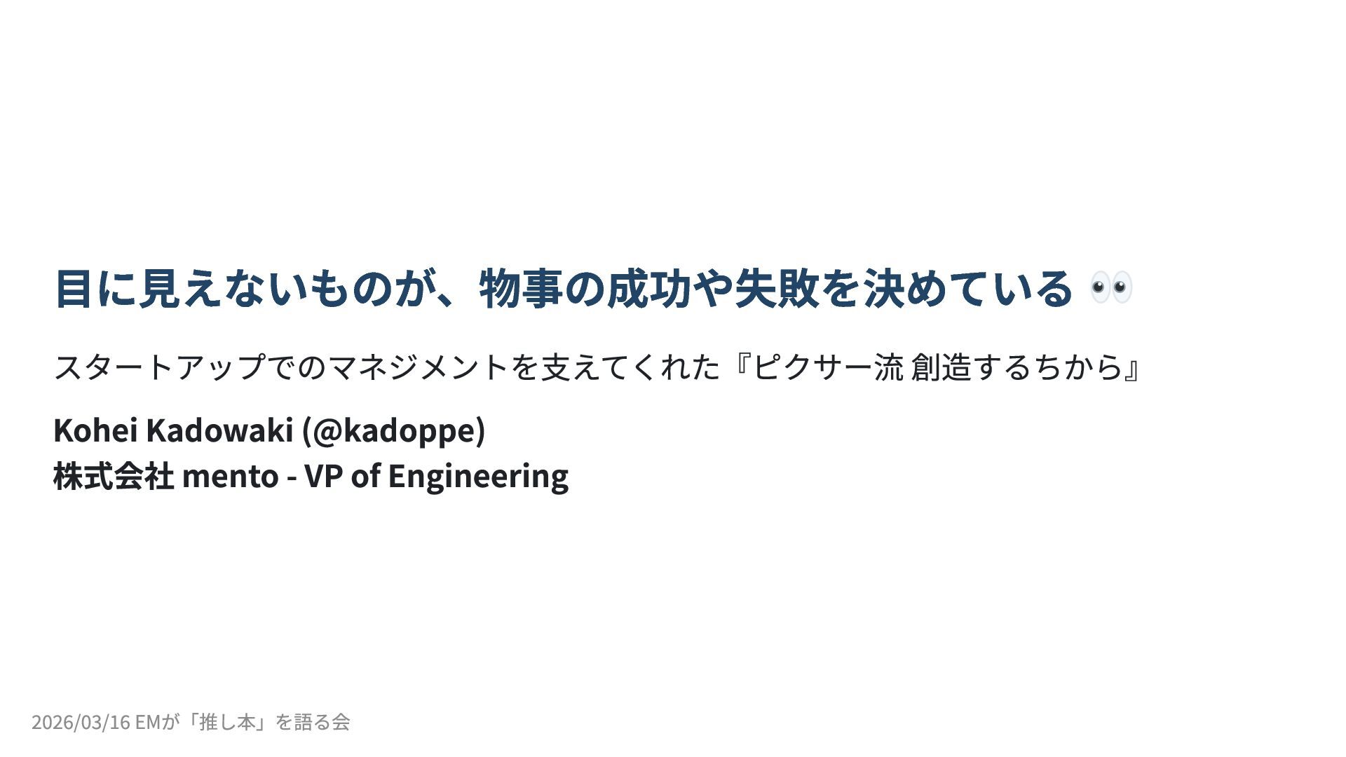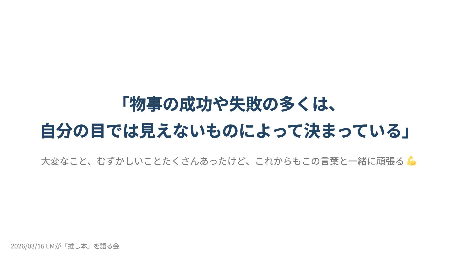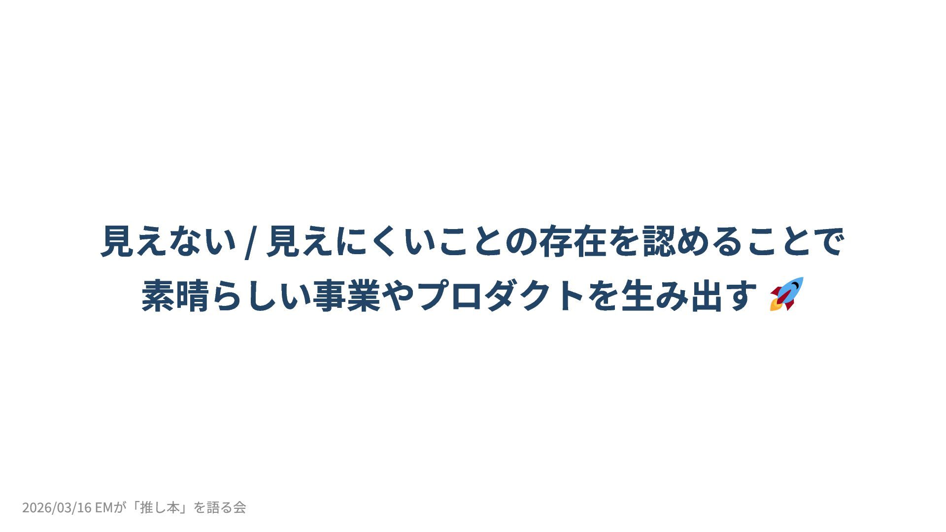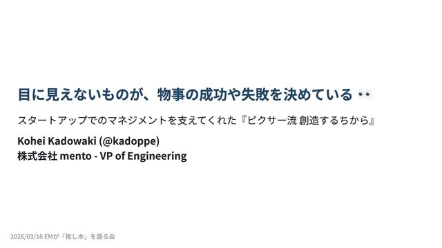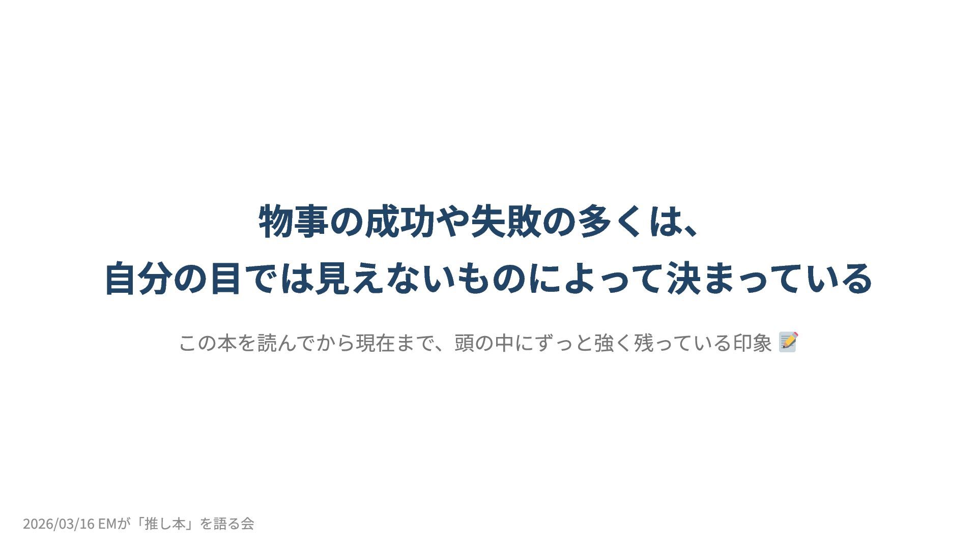 2026/03/16 開催の「EMが「推し本」を語る会 ーEMConf JP 2026 非公式サブイベント」のLT登壇(5分)の資料です。