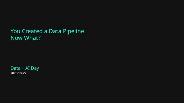 Data & AI Day 2025 - You Created a Pipeline, Now What?
