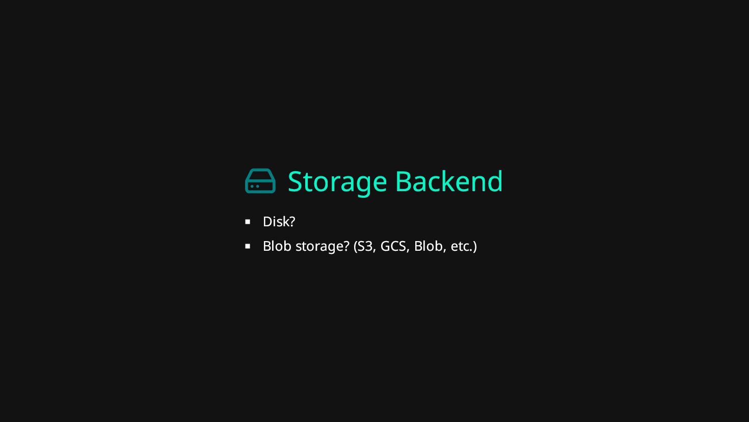 Storage Backend Disk? Blob storage? (S3, GCS, Blob, etc.)