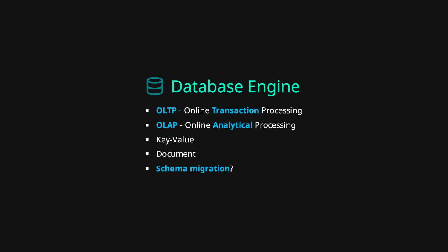 Database Engine OLTP - Online Transaction Processing OLAP - Online