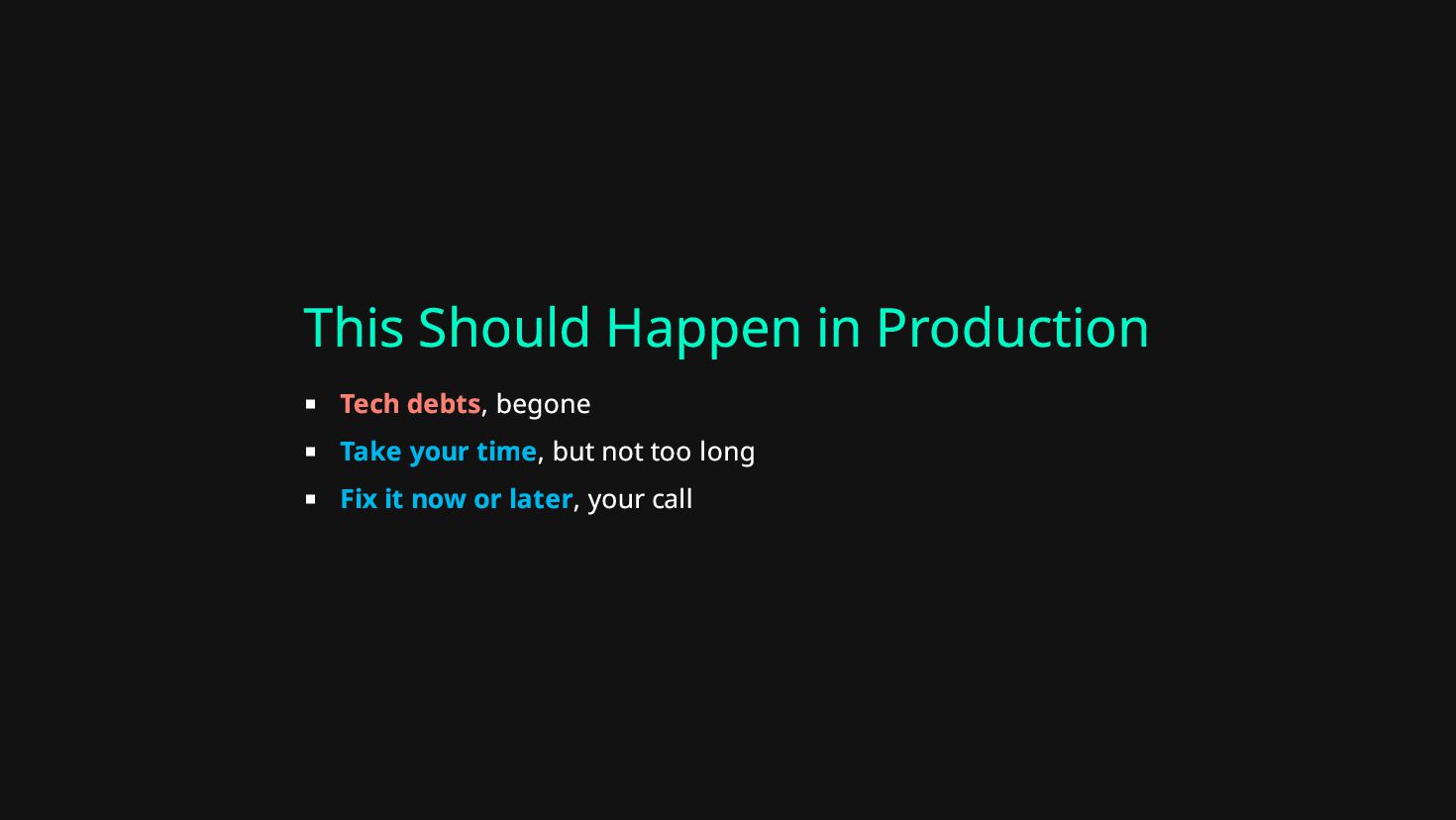 debts can slow things down Refactoring has a price It’s okay to end a project Some mistakes are very hard to rectify