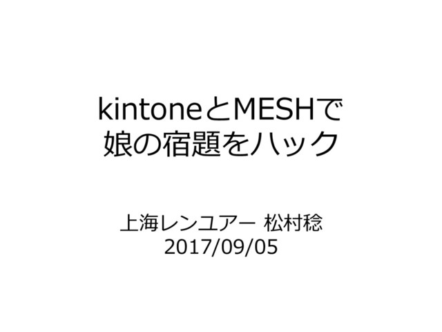 kintoneとMESHで 娘の宿題をハック 上海レンユアー 松村稔 2017/09/05