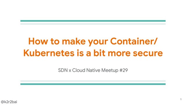 1. @k2r2bai How to make your Container/ Kubernetes is a bit